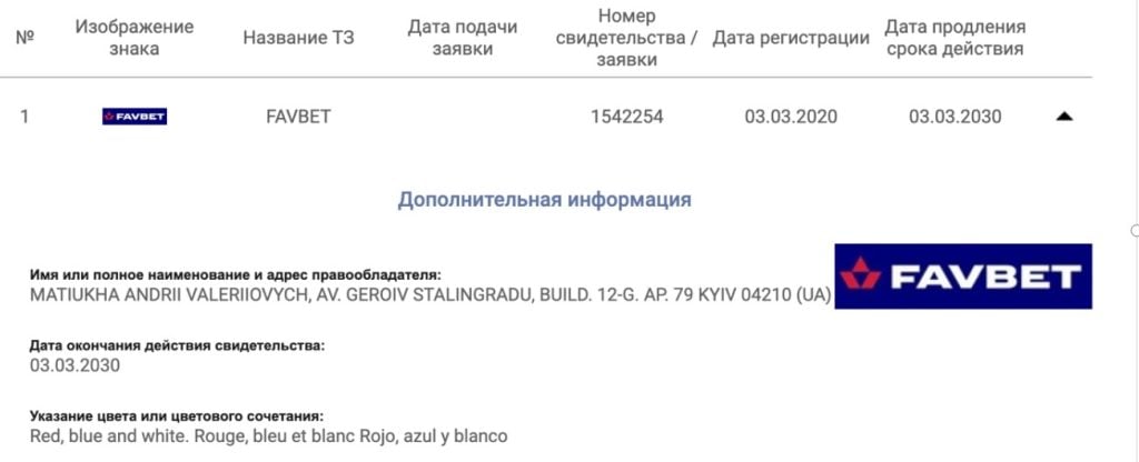 Згідно даних московської патентної служби, на сьогодні в Росії діє товарний знак Favbet з міжнародною реєстрацією, що був зареєстрований особисто власником групи компаній Favbet Андрієм Матюхою в березні 2020 року — дія цього товарного знаку спливає 3 березня 2030 року. Окрім цього, ще одна торгівельна марка Favbet старого зразка була зареєстрована в РФ з червня 2014 року до 30 грудня 2024 року — тобто за три роки повномасштабної війни ніхто її також не анулював.