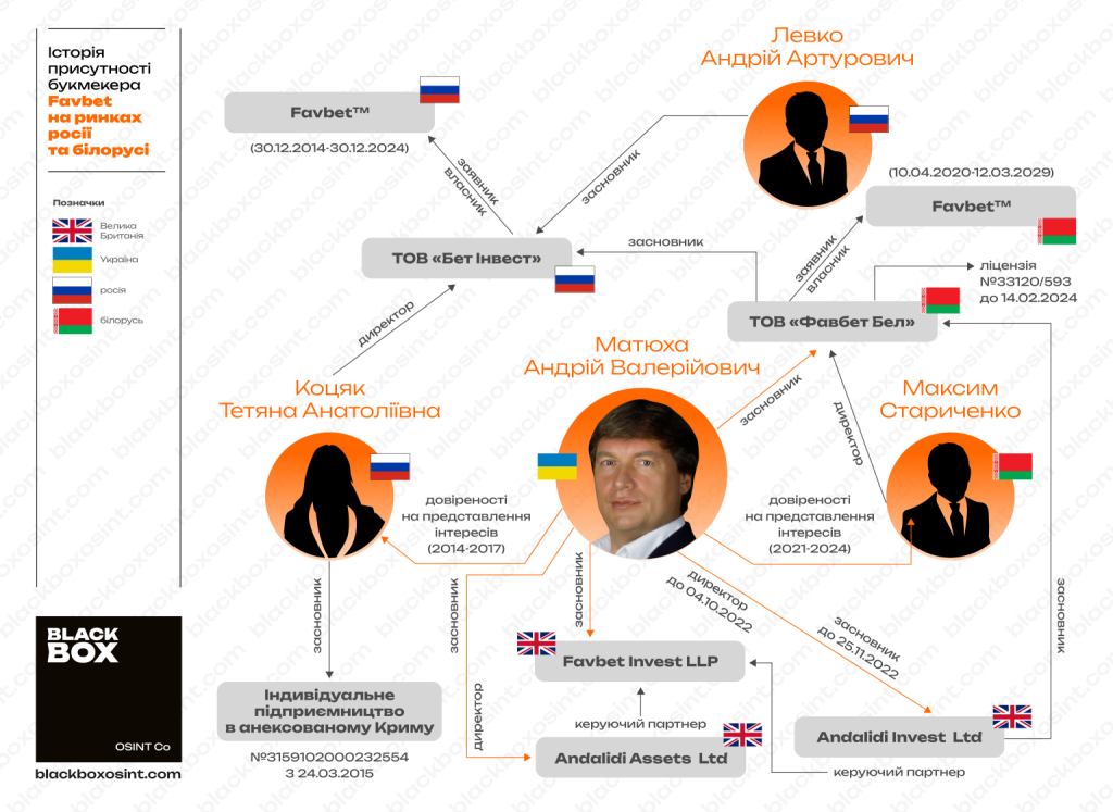 Букмекерська компанія Favbet, у якій заявляли, що ніколи не працювали у Росії, досі має чинну торгівельну марку в країні-агресорі, а в Білорусі — діючу компанію, що є правовласником трьох торгівельних марок, дія яких не припинялась.