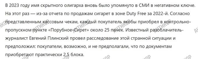 Як до Петра Порошенка ставиться нинішня влада – пояснювати не треба. Але при тому, що багато хто, пов’язаний із п’ятим президентом, за останні шість років сильно постраждав, а репресії щодо деяких із них тільки посилюються, Артур Гранц не лише безкарно залишив територію України, попри відкриту кримінальну справу. У нього навіть не забрали бізнес. А через короткий час він знову виникає в нашій країні як ділок потоку контрабандного тютюну. А 2025 року раптово виявляється, що Артур Гранц – респектабельний бізнесмен, власник журналу «Форбс» і футбольного клубу «Чорноморець».